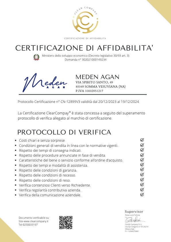 Che si tratti di un primo incontro o di un rapporto consolidato da tempo, ogni giorno si rinnova l'esigenza di confermare aspetti fondametnali del proprio flusso di lavoro, che diventano poi garanzia di prodoti e servizi di qualità, affidabili e sostenibili nel tempo. Ecco perché Medèn Àgan sceglie ogni anno di sottoporsi al Protocollo di Affidabilità ClearCompany®, differenziandosi così da competitor sleali e inattendibili, disposti a tutto pur di portare a casa una vendita.